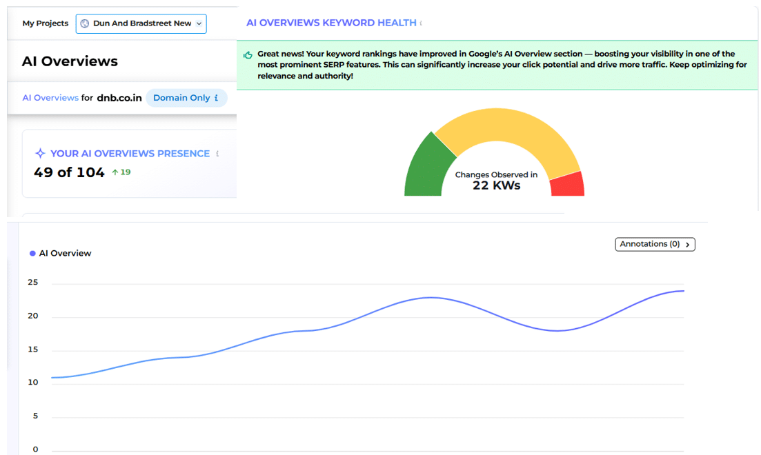 Using Infidigit’s proprietary AI-driven SEO platform, Infigrowth, we were able to track real-time performance for our website. This allowed for immediate identification of new keyword opportunities and faster adaptation to evolving AI Overview results. - Strengthening Brand Presence within AI-Generated Responses